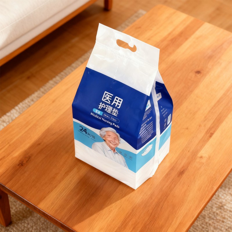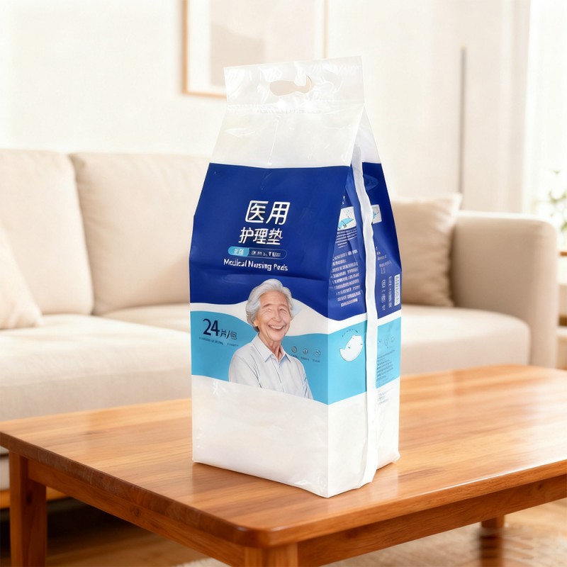 QINGDAO RED GOLDEN STAR PACKAGING AND PRINTING CO., LTD starannie zaprojektowane, wysokiej jakości torby higieniczne z czterema krawędziami są obecnie najpopularniejszą metodą pakowania na rynku. Torba ta wykonana jest z wysokiej jakości laminatów PET i PE, przy użyciu zaawansowanej technologii czterostronnego uszczelniania, aby zapewnić niezrównaną ochronę przed wyciekami, doskonałą trwałość i wygodę. Torba ta służy do pakowania artykułów higieny osobistej, takich jak podpaski higieniczne, podkładki dla szczeniąt i produkty na nietrzymanie moczu u dorosłych. Może zmniejszyć objętość produktu i zapewnić czystość produktu.
