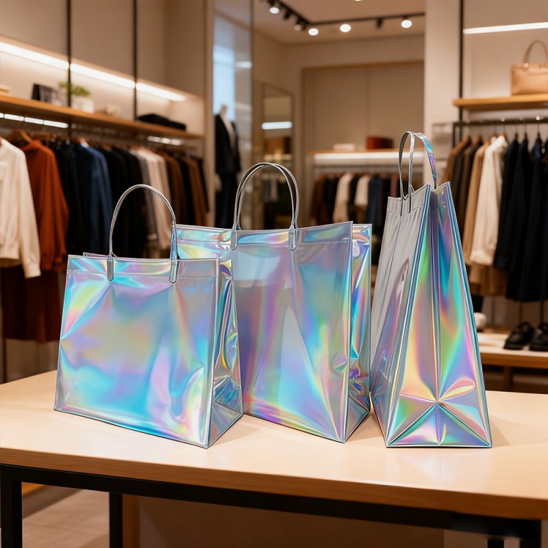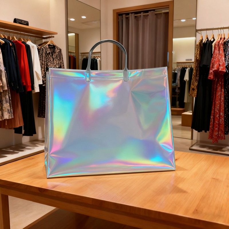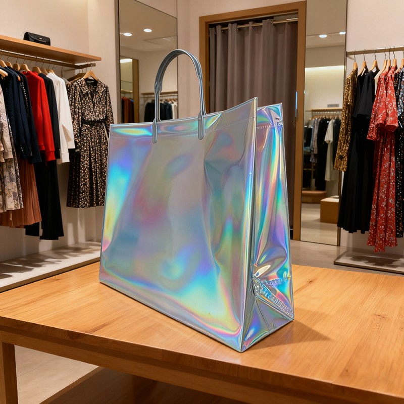 Czarujące efekty wizualne: tęczowe wykończenia i dynamiczne holograficzne wzory, które reagują na światło i ruch, tworząc stale zmieniające się widma. Konfigurowalny nadruk znaków towarowych i wzorów. Unikalna atrakcyjność wizualna, która wyróżnia się w każdym środowisku. Konstrukcja z materiałów najwyższej jakości: wysokiej jakości tworzywo sztuczne z trwałą laminacją folii laserowej. Odporna na zarysowania i wodoodporna powłoka powierzchniowa. Wzmocnione uchwyty i punkty naprężenia dla zwiększenia trwałości. Utrzymuje integralność strukturalną pod dużym ciężarem. Ulepszona funkcjonalność: tworzywo sztuczne i nowa technologia mogą zapewnić wodoodporną ochronę zawartości, jednocześnie ułatwiając czyszczenie powierzchni. Dzięki maksymalnemu udźwigowi 10 kg zapewnia również wygodny chwyt. Wartość wzmocnienia marki: Tworzenie niezapomnianych wrażeń podczas rozpakowywania, doskonały wygląd zachęca do udostępniania i widoczności w mediach społecznościowych, poszerzania ekspozycji marki poprzez wielokrotne używanie oraz budowania wysokiej jakości świadomości marki. Korzyści dla środowiska: Konstrukcja wielokrotnego użytku zmniejsza ilość odpadów opakowaniowych. Trwała konstrukcja zapewnia długą żywotność.