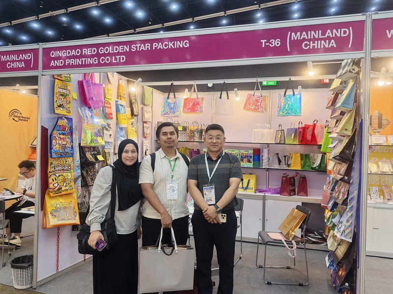 QINGDAO CZERWONA ZŁOTA GWIAZDA OPAKOWANIA I DRUKOWANIA CO., LTD.z dumą ogłasza nasz udany udział w MEGA SHOW 2025 w Bangkoku w Tajlandii. Targi te są bardzo ważnymi międzynarodowymi targami i stanowią dla naszej firmy doskonałą platformę do zaprezentowania naszych nowych produktów, a także wzmocnienia naszego globalnego zasięgu.