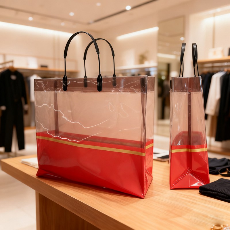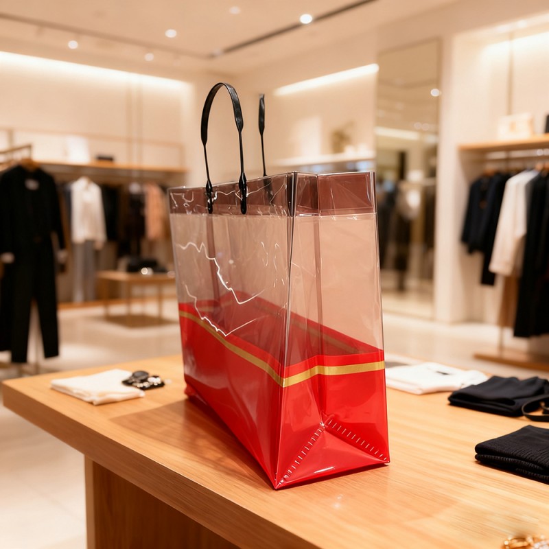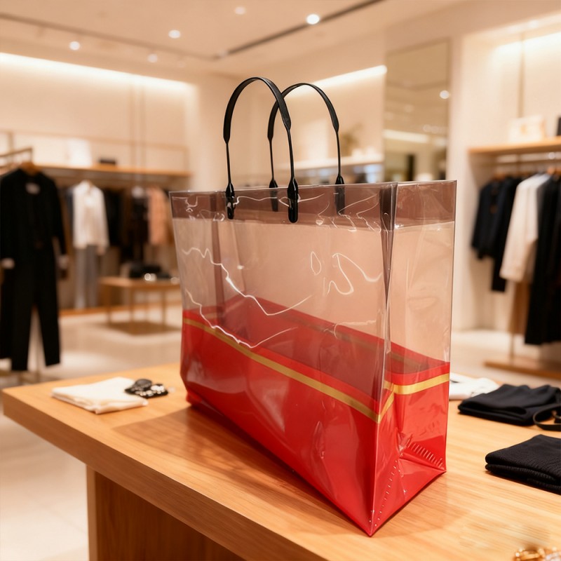 Wysokiej jakości materiał CPP: Dzięki krystalicznie czystej widoczności, która pięknie eksponuje zawartość, ta torba jest wykonana z odlewanego polipropylenu (CPP) o wysokiej przezroczystości. To, co czyni go naprawdę wyjątkowym, to fakt, że pomimo delikatnego wyglądu utrzymuje doskonałą wytrzymałość i odporność na rozdarcie. Wodoodporna powierzchnia naprawdę chroni Twoje przedmioty przed zalaniem i wilgocią, co oznacza, że możesz liczyć na długotrwałe działanie nawet przy codziennym użytkowaniu. Luksusowy akcent w postaci złotego paska: elegancki pasek ze złotej folii biegnący elegancko wzdłuż talii torby dodaje doskonałego akcentu wyrafinowania. To niesamowite, jak ten subtelny szczegół podnosi całą estetykę, nie przytłaczając minimalistycznego projektu. To połączenie sprawia, że torba szczególnie dobrze nadaje się do luksusowych sklepów detalicznych i na specjalne okazje związane z wręczaniem prezentów. Wzmocnione uchwyty i nośność: ergonomicznie zaprojektowane uchwyty, które zauważysz, są podwójnie szyte i starannie wzmocnione we wszystkich obszarach punktów naprężenia. Ta inteligentna konstrukcja zapewnia wyjątkowy komfort podczas noszenia cięższych przedmiotów w środku. Dodatkowo strukturalna podstawa torby doskonale zwiększa stabilność - może niezawodnie utrzymać ciężar do 8 kilogramów, nie tracąc przy tym swojego pierwotnego kształtu. Konfigurowalne opcje brandingu: Dzięki zaawansowanej technologii druku metodą tłoczenia na gorąco możemy dostosować te torby za pomocą nadruku logo, wzorów lub komunikatów promocyjnych. Przezroczyste tło świetnie się sprawdza, sprawiając, że projekty wyskakują, tworząc coś, co w zasadzie staje się ruchomą reklamą zwiększającą widoczność Twojej marki. Wiele firm uważa tę funkcję za niezwykle cenną w swoich kampaniach marketingowych, a także w działaniach na rzecz widoczności marki. Ekologiczna i wielokrotnego użytku: Oto coś ważnego – w przeciwieństwie do jednorazowych toreb plastikowych, ta torba CPP w całości nadaje się do ponownego użycia i recyklingu. Aktywnie wspiera inicjatywy w zakresie zrównoważonego rozwoju, dostarczając jednocześnie opłacalne rozwiązanie w zakresie opakowań. Przedsiębiorstwa dbające o środowisko szczególnie doceniają połączenie praktycznej funkcji z odpowiedzialnością ekologiczną.