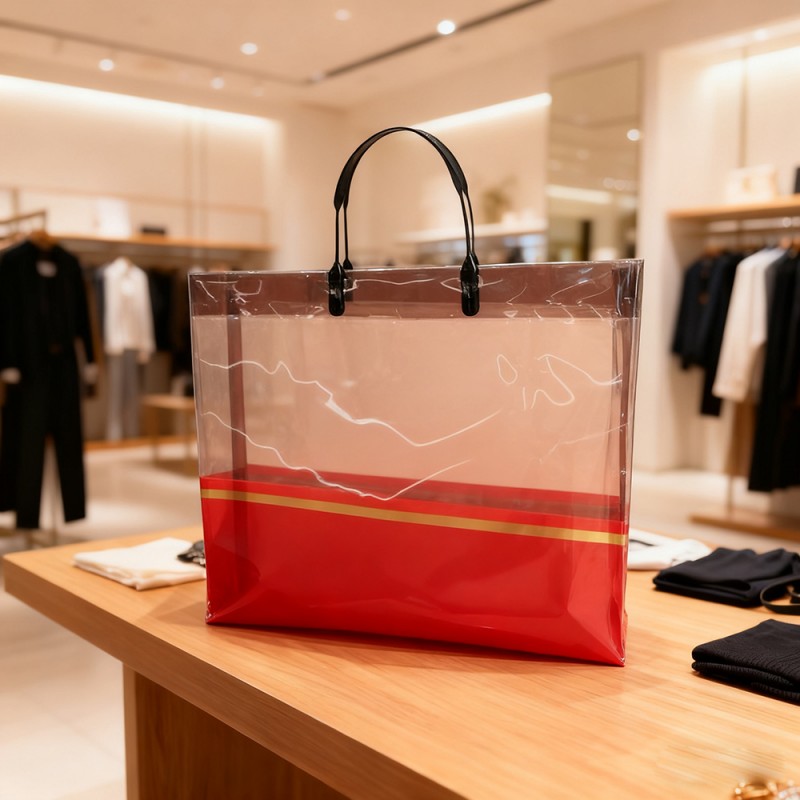 Butiki detaliczne i modowe: Ideal służy jako luksusowa torba na zakupy odzieży, akcesoriów i kosmetyków. Zwiększa postrzeganą wartość marki i poprawia zadowolenie klientów dzięki jej doskonałemu wyglądowi. Prezenty i wydarzenia firmowe: Idealne do pakowania zestawów upominkowych, artykułów promocyjnych lub upominków związanych z wydarzeniami. Dekoracja złotej opaski jest spójna z tematyką marek z najwyższej półki, dzięki czemu nadaje się do promocji korporacyjnej. Codzienne użytkowanie i podróże: Lekka i składana torba służy jako stylowy towarzysz podczas zakupów spożywczych, wycieczek na plażę lub nieformalnych wycieczek. Jego przejrzystość pozwala na łatwą identyfikację treści i jest wygodna w codziennym użytkowaniu. Wystawy i pokazy handlowe: Działają jak chodząca reklama, jeśli zostaną dostosowane za pomocą elementów marki, przyciągając uwagę podczas dystrybucji materiałów lub próbek. Pomaga w widoczności marki i nawiązywaniu kontaktu z potencjalnymi klientami.